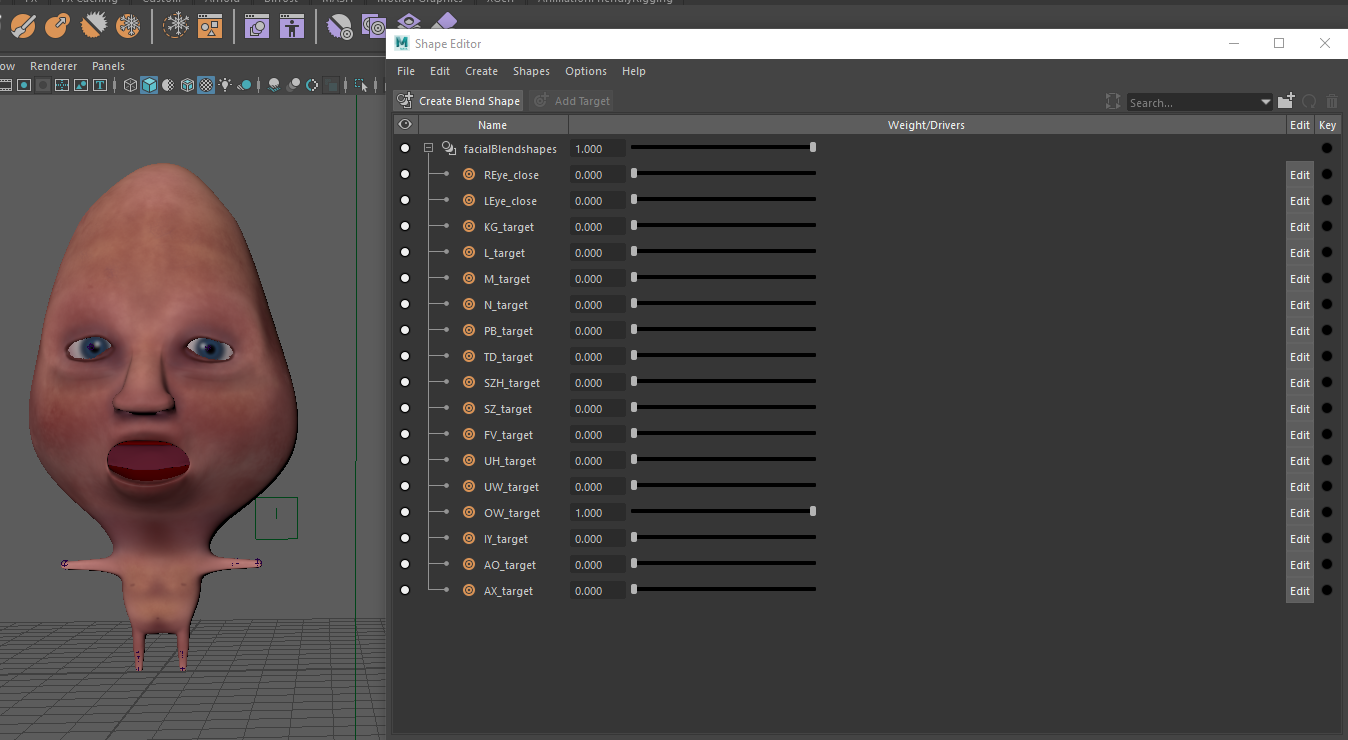 STEP 1: Once you have your model completely done (plus transformations frozen and edit history deleted) you’re going to want to make a morph target for each phoneme. Motionbuilder’s Voice Device (which I’ll discuss later) has the following phonemes options: